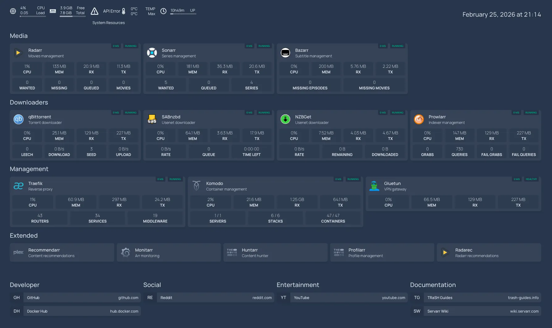 | Media Management | radarr, sonarr, bazarr, monitarr, profilarr, radarec, unpackerr, swaparr |