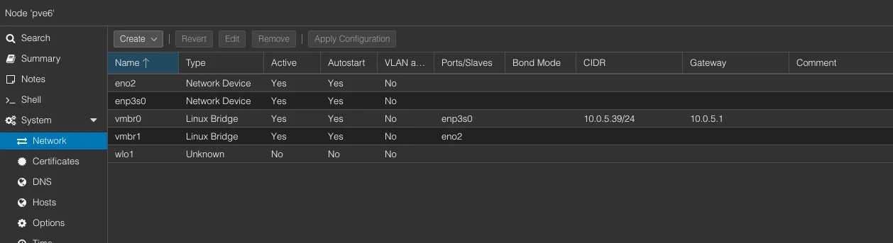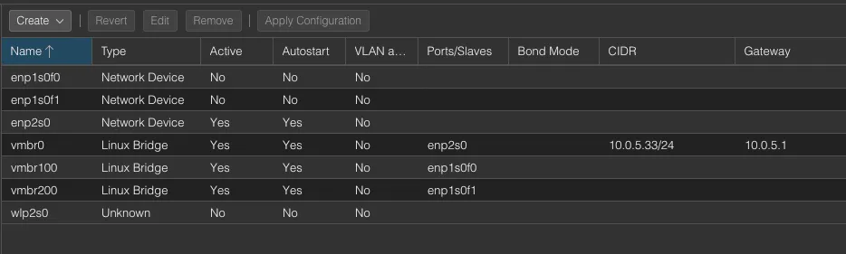 With multiple NICs, this node doubles as my networking testbed. Before making any changes to the main pfSense, I spin up a VM-based pfSense here to test configurations first. It also runs a few proof-of-concept and testing machines (Debian, Ubuntu) for whatever I’m experimenting with at the time.