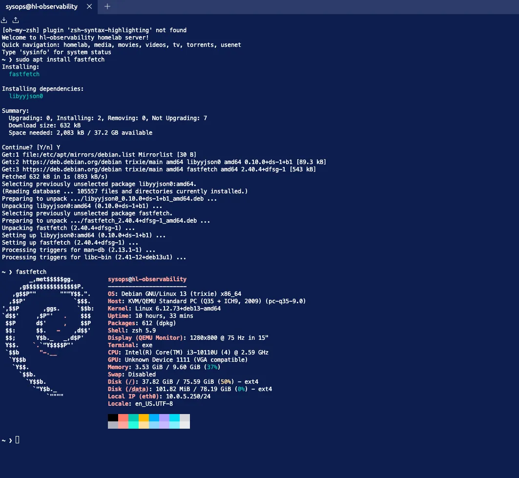 hl-observability is where all my homelab telemetry lands. Every machine in the lab runs an OpenTelemetry collector and Fluent Bit agent that ship data to Kafka (running on hl-maintenance on pve5). From there, dedicated OTel and Fluent Bit consumers pull from Kafka and push metrics into VictoriaMetrics and logs into VictoriaLogs for long-term retention. I’ll cover the full pipeline and stack breakdown in Part 3’s Observability section.