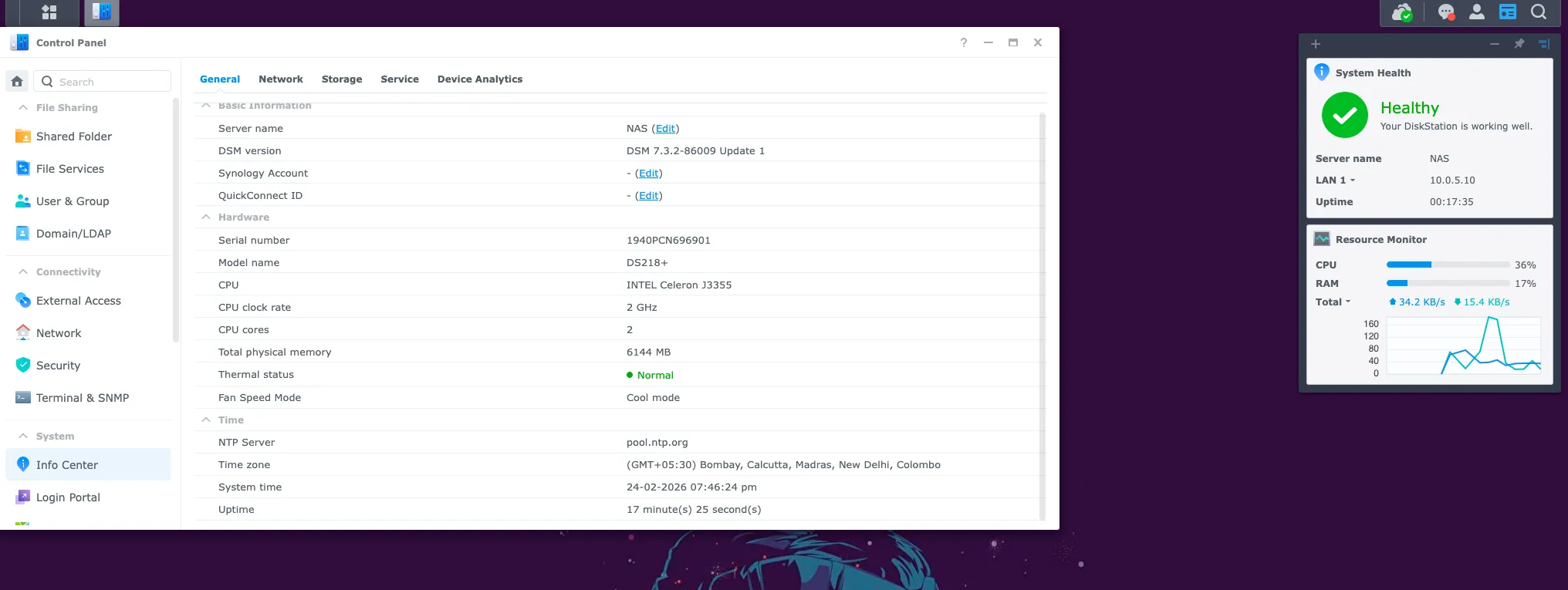 | CPU | Intel Celeron J4125 @ 2.00 GHz (4 cores) |